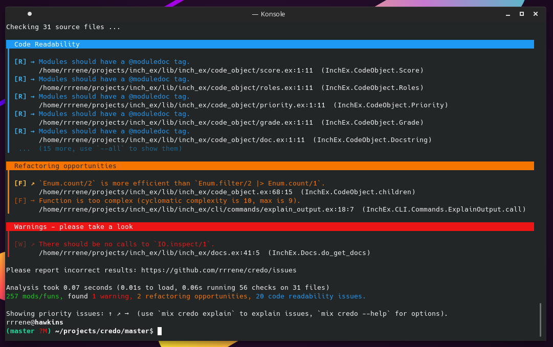 The screenshot of the standard mix credo command also looks almost identical in the current version of Credo:
